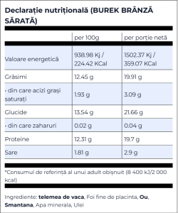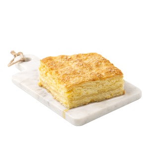 Plăcintă artizanală tradițională de origine balcanică cu carne tocată din pulpă de porc, ou și smântână, realizat din foi fine cu umplutură suculentă și cremoasă. Gust bogat, echilibrat, cu textură fragedă la interior și crustă crocantă la exterior.